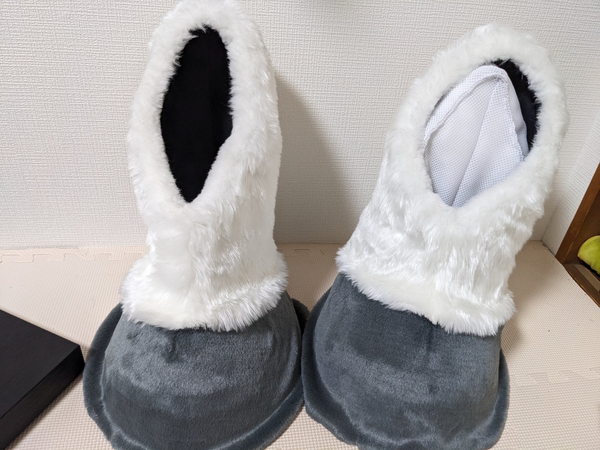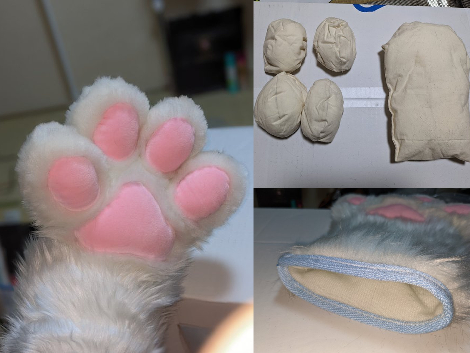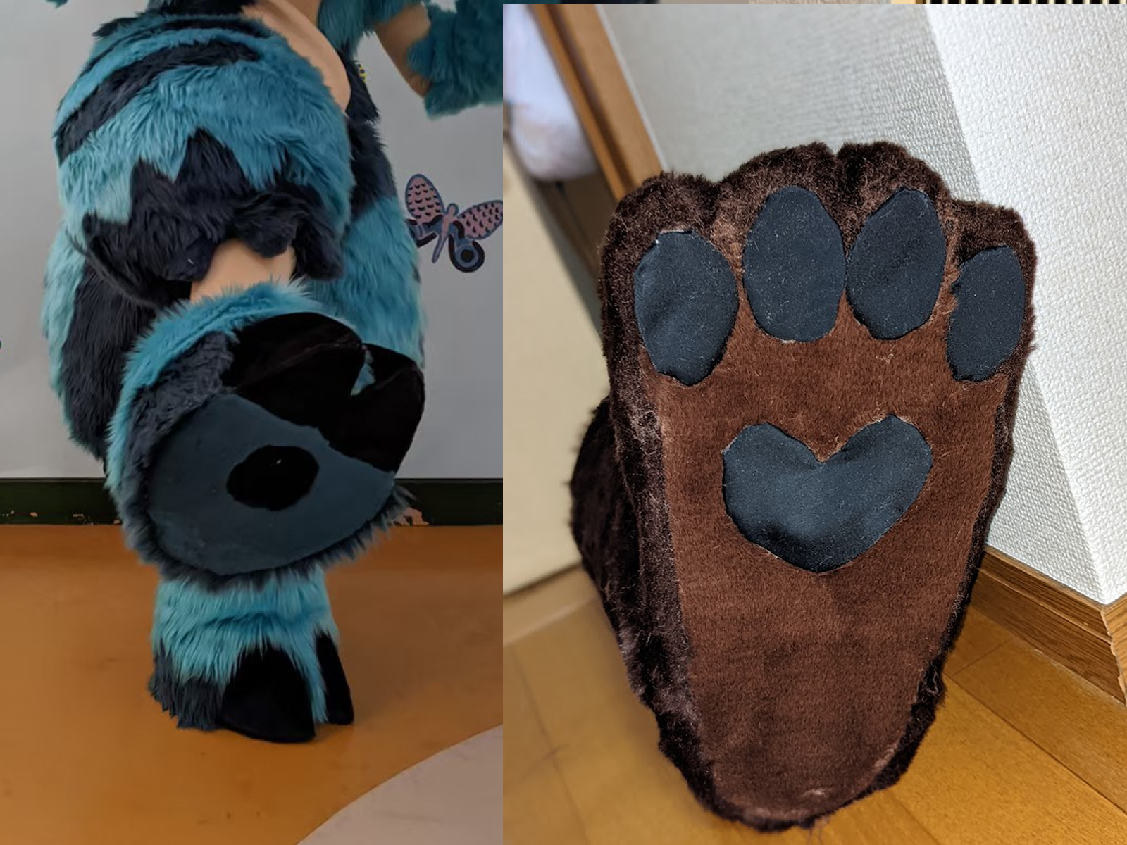 ボア生地で足裏を作り込みます。汚れやすいので室内用足として運用するか、外出時はサンダルなどで足を保護する必要があります(肉球は別オプションとなります)。