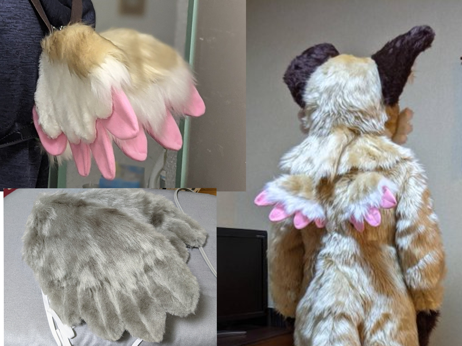 背中に羽を生やします。メンテナンスしやすい着脱式と着やすい一体型の両方から選べます。