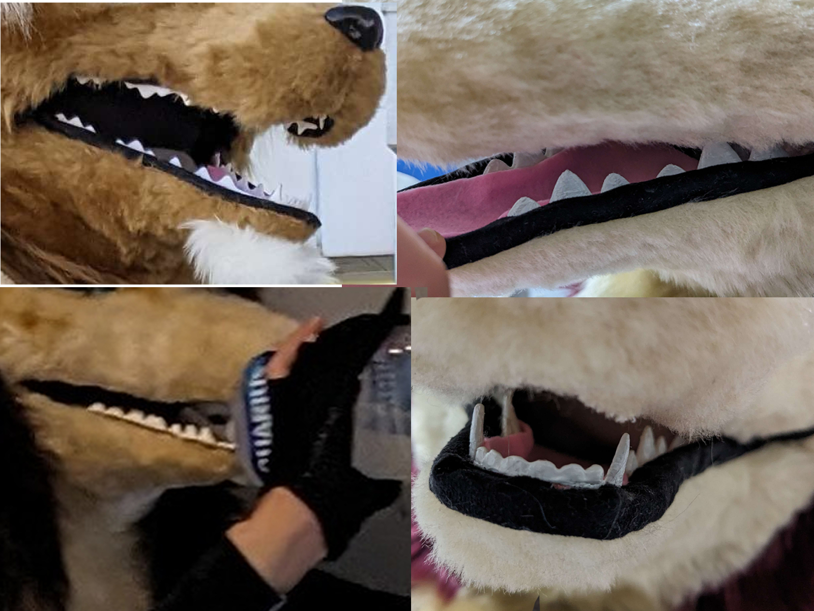 樹脂製の牙パーツで口の中を作り込みます。狼・ドラゴン系のキャラだと口を開けたとき映えます。