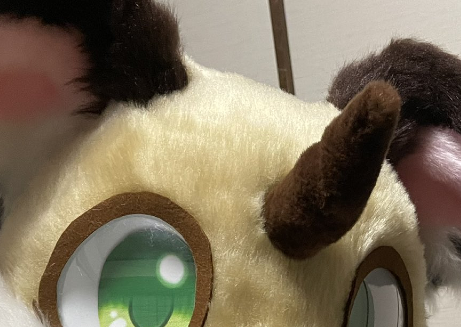 布で覆った角やトゲを実装します。場所によっては着脱式にすることも可能です。